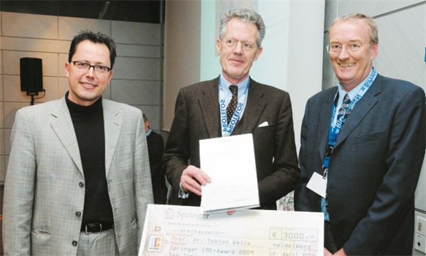 Die beste CME-Arbeit aus "Der Internist" erhält jedes Jahr den CME-Award. "Das Votum der Herausgeber und das Votum der Leser stimmte überein", sagte Laudator Professor Joachim Mössner vom Uniklinikum Leipzig. Und zur besten CME-Arbeit wurde dieses Jahr die Übersicht von Professor Tobias Welte von der Medizinischen Hochschule Hannover gewählt. Der Pneumologe handelt darin auf zehn Seiten die wichtigsten Fakten zur ambulant erworbenen Pneumonie ab, von der Diagnose, der Therapie, den Risikogruppen - vor allem Bewohner von Alten- und Pflegeheimen sowie chronisch Kranke - und auch der möglichen Prophylaxe durch Impfungen (Der Internist 50, 2009, 331). Der CME-Award ist mit 3000 Euro dotiert.