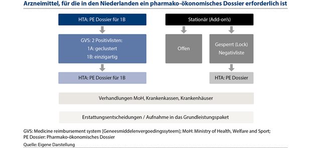 In den Niederlanden gibt es ein obligatorisches soziales Krankenversicherungssystem mit einem relativ großzügigen Grundleistungspaket. Um dem Problem von hochpreisigen Arzneimitteln zur stationären Behandlung zu begegnen, hat die niederländische Regierung ein Sperrverfahren (das sogenannte „Lock-Verfahren“) für die Verwaltung des Marktzugangs (Market Access Management) eingeführt. Bei Arzneimitteln, die bestimmte Schwellenwerte für die Kosten pro Patient und/oder die Auswirkungen auf das Budget überschreiten, müssen die Entwickler neben dem klinischen Dossier ein umfassendes pharmakoökonomisches Dossier einreichen. Die anschließende Bewertung erfolgt durch das Zorginstituut Netherlands (ZIN), wobei die „Kosten pro QALY“ (qualitätsadjustierte Lebensjahre) einer Intervention mit einem Schwellenwert verglichen werden, der mit zunehmender Schwere der Erkrankung steigt. Die endgültigen Preisverhandlungen werden von einem Team des Gesundheitsministeriums geführt. Konzeptionell geht das ZIN schrittweise zu einem risikobasierten und zyklischen HTA-System über.
