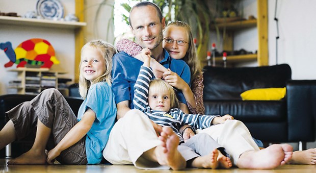 Papa ist der Beste: Peter Hellriegel, der eine neue Leber erhalten hat, zusammen mit seinen Kindern.