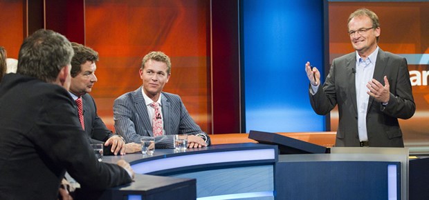 Sterben als Thema bei "Hart aber fair" (rechts). Von links: Tilman Jens, Peer Juhnke und Stephan Kulle. Nicht im Bild: Renate Schmidt und Inga Griese.