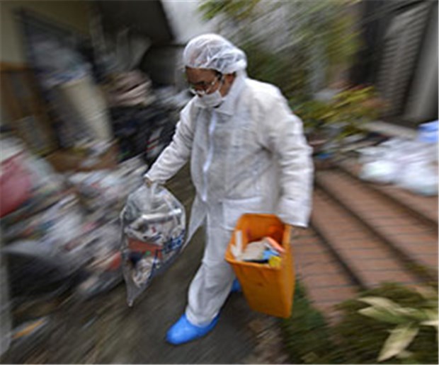 Überall sind Japaner in Straßenarbeiterkluft emsig damit beschäftigt, Häuser mit Papiertüchern abzuwischen, Gräser und Blätter aufzusammeln und die Erde - wo es geht - fünf Zentimeter tief abzutragen.