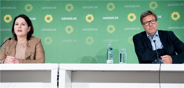 Die Bundesvorsitzenden von Bündnis90/Die Grünen: Annalena Baerbock und Robert Habeck bei der Pressekonferenz zum Abschluss der Klausurtagung.