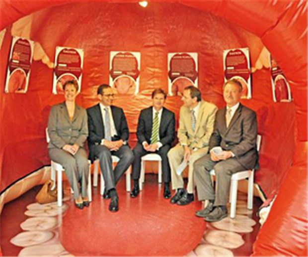 In der Mundhöhle: Dr. Heiner Garg (Mitte) und andere Unterstützer der Aufklärungskampagne gegen Mundkrebs.