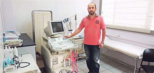 Auch das Ultraschallgerät ist eine Spende aus Hamburg: Christos Sideris in der Sozialklinik Elliniko im gleichnamigen Athener Stadtteil.