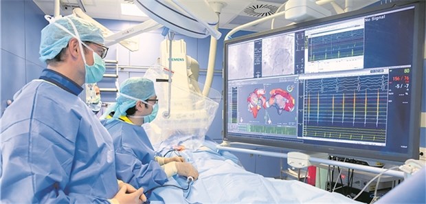 Beim 3D-Mapping interpretieren die Kardiologen in Essen eine elektrische Landkarte der Herzoberfläche, die dank neuester Technik innerhalb weniger Minuten mehr als 20000 Datenpunkte im EPU Labor sammelt.