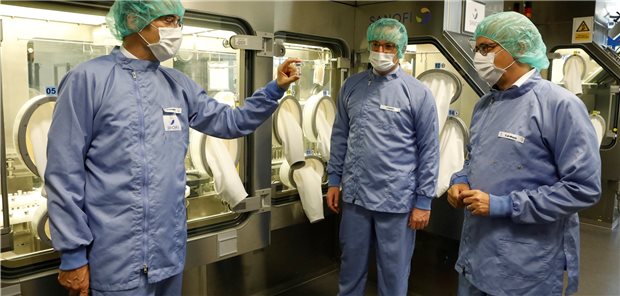 Frankfurt/M. Am Dienstag nahm Sanofi an seinem Fertigungsstandort im Industriepark Höchst offiziell eine Abfüllanlage in Betrieb, die – Zulassung vorausgesetzt – Bestandteil der späteren Fertigungsstrecke eines Corona-Impfstoffs sein soll. Prominente Gäste des Termins: Bundesgesundheitsminister Jens Spahn (CDU) und Hessens Wirtschaftsminister Tarek Al-Wazir (Die Grünen).